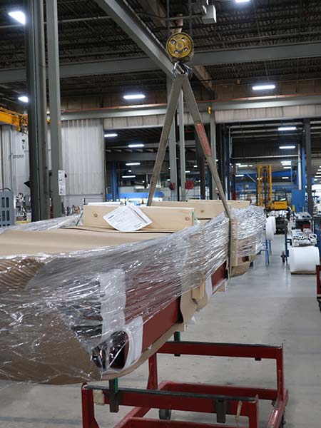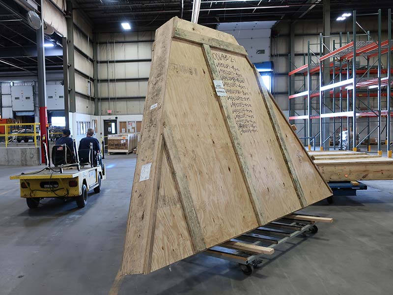 When replaced after finishing, the material within each crate is packaged securely. Foam spacers are used to prevent finished panels from sliding inside crate.
