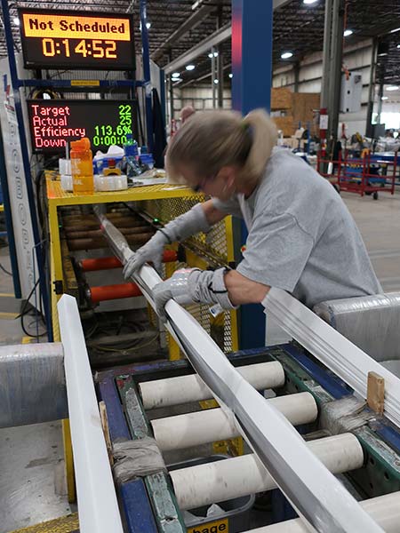 Extrusions are nested together with poly film interweave and v-board corner protection. The extrusions are then wrapped tightly as they are put through our robo-packaging machine.
